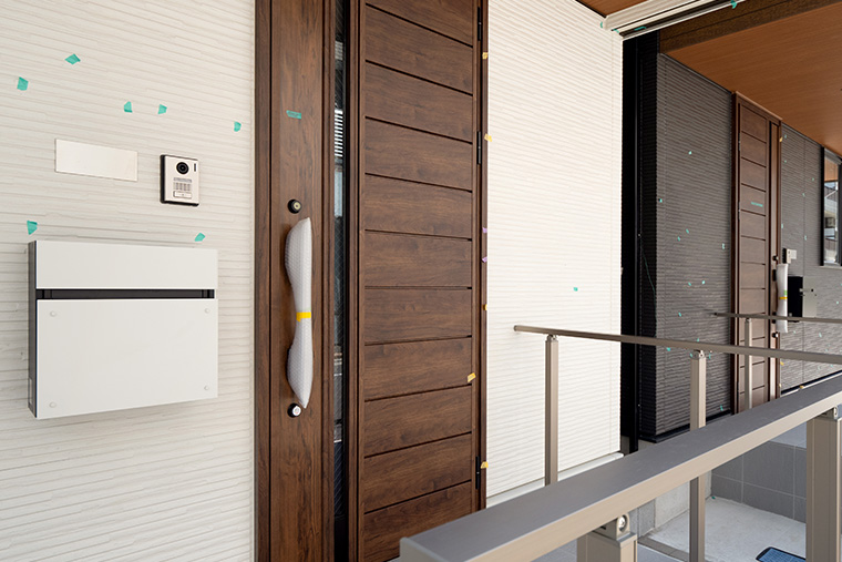 - 住まいの顔である門や表札も、外観にあわせたデザインで統一感を演出。選ぶ素材によっても印象が変わります。