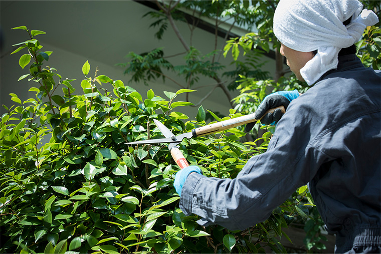 - 育ちすぎた木々の剪定や伐採もご依頼ください。庭木を健やかな状態に保った剪定や、お庭のスペースにあわせた剪定を行います。